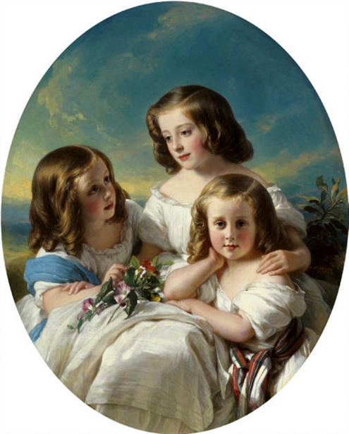 Try as he might, the painter could not get all three siblings to look straight ahead, stop fidgeting, and give pleasant expressions. To his relief, the mother loved the natural moment captured.